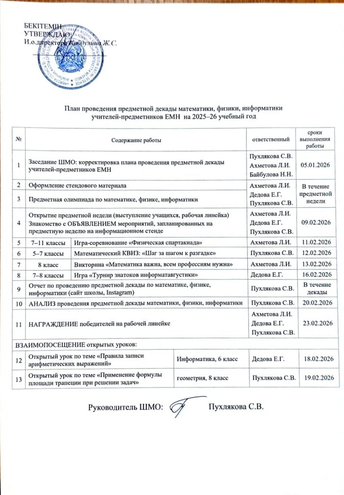 Пәндік аптаның жоспары МИФ 2025-2026 оқу жылы